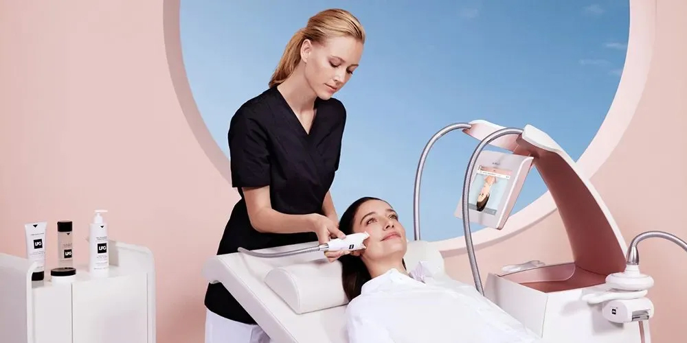 美容儀器廠商 Ultherapy 獲美國FDA認證,以非侵入式技術,療程期間,聚焦超聲波能量會透過儀器輸送至皮膚內無須開刀,收緊頸部及下顎線條、拉提眉線及改善上胸皺紋的療程,緊緻肌膚。
