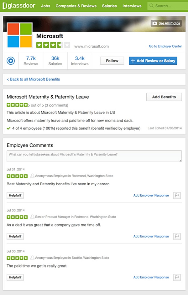 Glassdoor 除了基本的搜尋職位功能,更為應徵者提供「匿名分享」,分享在某某公司工作的經歷、職場關係和薪金等資訊,助你在入職或面試前更深入了解該公司。