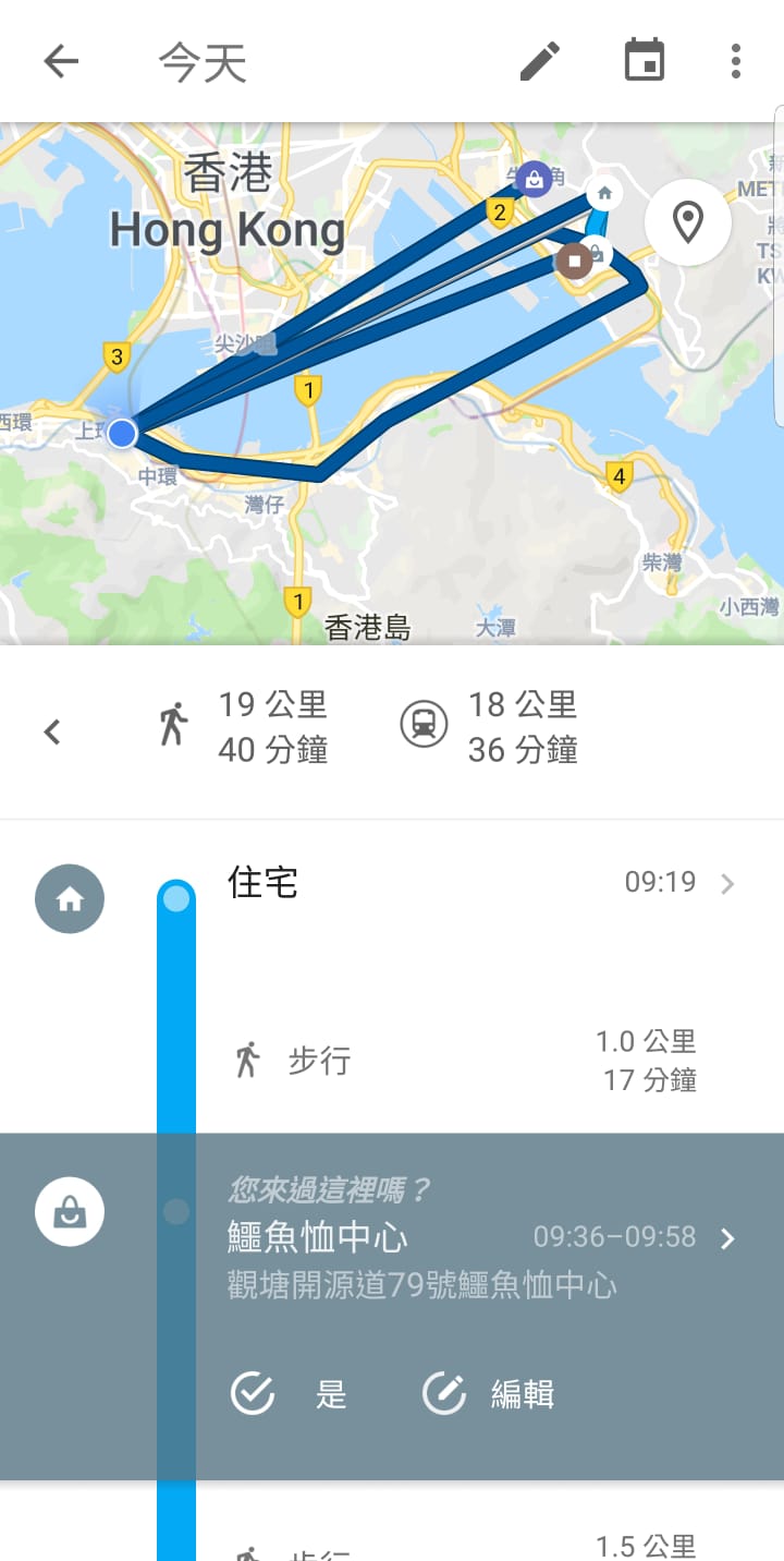 未刪除記錄前,小編H在我Android版本Google Map Version 10.20.1的記錄是這樣的!