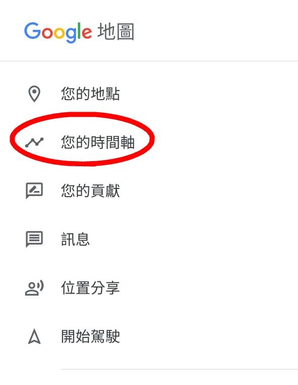 一.打開Google Map,找出「您的時間軸」按鈕;