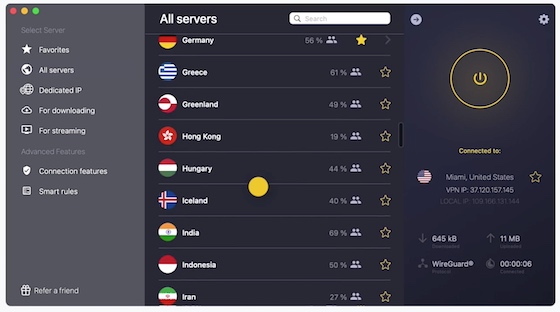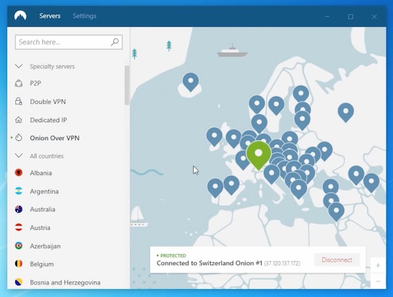 NordVPN的操作介面 (圖源:https://nordvpn.com)