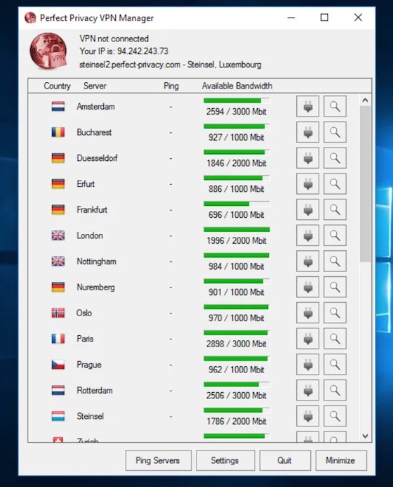 Perfect Privacy VPN 的操作介面 (圖源:https://www.perfect-privacy.com)