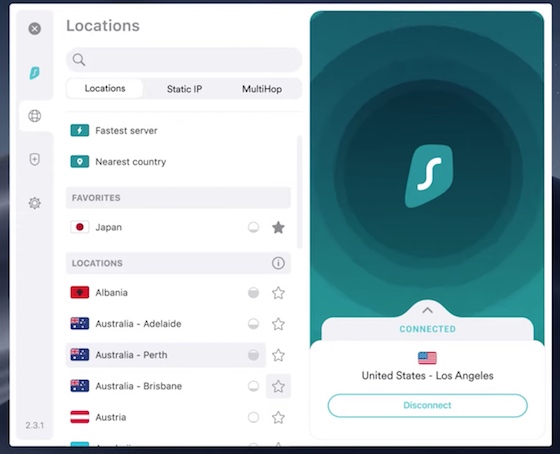 Surfshark VPN 的操作介面 (圖源:https://surfshark.com)